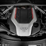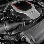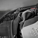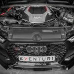 Leistungssteigerung: 13-17PS, 15-20ft-lbV-Box Beschleunigung: 60-130mph reduziert um 0,5 SekundenDie Ansaugung für den Audi B9 S4/S5 von Eventuri wurde entwickelt, um dem Turbo einen weniger restriktiven Luftstrom zu geben und gleichzeitig niedrige Einlasstemperaturen beizubehalten. Der S5/S4-Motorraum wird sehr schnell erhitzt, so dass ein offenes System zwar zu einem besseren Luftstrom führen würde allerdings bei höheren Eintrittstemperaturen. Deshalb wurde die Luftstrum-Strecke vom Frontgrill bis zum Turboinlet mit einem hocheffizienten, abgedichteten System komplett überarbeitet. Die restriktive OEM-Airbox und das flexible Kunststoffrohr wurden durch ein Venturi-Filtergehäuse und ein Kanalsystem mit glatten Übergängen ersetzt. Darüber hinaus ist der Luftstrom durch das Entfernen des gefalteten OEM-Rohres und den Austausch des Filters durch unser patentiertes und einteiliges Venturigehäuse, sowie ein starres Rohr wesentlich ruhiger, wenn er in das Turboinlet eintritt. Die daraus resultierende Leistungssteigerung und Ästhetik sind bahnbrechend innovativ für diese Plattform.Der Eventuri-UnterschiedDas B9 S4/S5 Eventuri-System verwendet unsere zum Patent angemeldeten Kohlefasergehäuse mit unserem maßgeschneiderten Gen-2-Filter, die einen aerodynamisch effizienten Luftstromweg vom Filter zu den Inlets bieten. Nicht nur ein weiterer Filter mit Hitzeschild, sondern ein einzigartiges Design, das den Venturi-Effekt hervorruft. Die Ansaugung wurde auf der Straße VBOX-getestet, um die Beschleunigung von 60-130mph (und 100-200Km/h) aufzuzeichnen. Die Tests wurden auf der gleichen Strecke durchgeführt – und am selben Tag, um die Variablen so gering wie möglich zu halten. Die Ergebnisse zeigen, dass sich die Beschleunigungszeiten von 60-130mph um fast 0,5 Sekunden verringert haben, was bei solchen Geschwindigkeiten eine deutliche Verbesserung darstellt. Dies zeigt, dass die am Dyno gemessenen Gewinne nicht repräsentativ dafür sind, wie sich die Ansaugung auf der Straße verhält, wenn er die richtigen Strömungsverhältnisse hat – auf der Straße zeigt die Ansaugung einen größeren Gewinn durch die Reduzierung der Beschleunigungszeiten im Vergleich zum Dyno. Zusammenfassung der Beschleunigungsergebnisse: 60-130mph mit Original Airbox = 14,72 Sekunden60-130mph mit Eventuri-Ansaugung = 14,24 Sekunden100-200Km/h mit Original Airbox = 12,45 Sekunden100-200Km/h mit Eventuri-Ansaugung = 12,12 SekundenDie Verbesserungen ergeben sich aus einer Kombination von Gründen: 1) Das geschlossene System hält die IATs niedrig – besonders mit der vorderen Lufthutze, die die Luft in das System drückt. 2) Das Venturigehäuse sorgt für einen reibungslosen Übergang vom Filter zum Ansaugrohr ohne Reibung. Dies hilft dem Turbo, effizienter zu laufen, indem die laminare Strömung in der Einlaufstrecke aufrechterhalten wird. 3) Das gesamte System ist aus reiner Pre-Preg-Kohlefaser hergestellt, die sich hervorragend zur Wärmedämmung eignet.