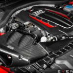 Das Audi C7 S6/S7 Eventuri Ansaugsystem setzt einen neuen Maßstab für das Ansaugsystem auf dieser Plattform. Es wurde entwickelt, um zwei Ziele zu erreichen – 1) Die Turboeinlasspfade zu entlasten. 2) Aufrechterhaltung niedriger Einlasstemperaturen. Das erste Ziel wurde erreicht, indem jeder Turbo mit einem separaten Filter und Venturi Trichter ausgestattet wurde, um den Luftwiderstand zu reduzieren und den Turbos eine effizientere Arbeit zu ermöglichen. Das zweite Ziel wurde dadurch erreicht, dass die Filter in einer Carbon-Luftkammer eingeschlossen und mit einer zusätzlichen, hinter dem Frontgitter angebrachten Schaufel beschickt wurden. Der Motorraum des C7 RS6/RS7 hat mehrere Wärmequellen aus verschiedenen Richtungen, so dass eine einfache Konfiguration von offenen Filtern und Abschirmungen zu höheren IAT-Werten führen würde. Unser Carbon-Airbox-Gehäuse wurde so konzipiert, dass das verfügbare Volumen maximal genutzt und alle Wärmequellen blockiert werden. Die sich daraus ergebenden Leistungssteigerungen und die Ästhetik sind für den C7 S6/S7 branchenweit führend.