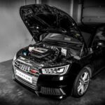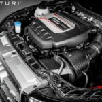 Wenn man wie Eventuri loszieht und sich zur Aufgabe macht ein neues Verstädnnis für Qualität und Produktdesign in einer ganzen Branche zu etablieren, dann gibt man sich nur mit dem perfekten Ergebnis zufrieden. So auch beim Intake für den Audi S1. Eine Abwandlung des ursprünglichen VAG 2.0 TFSI Intake – Auch bei der Audi S1 Ansaugung kommt die patentierte Eventuri Technik zum Zuge. Die Luft wird durch die vergrößerte Luftaufnahme und dann in einem wesentlich breiteren Ansaugrohr zum Motor gedrückt. Dank innovativer technischer Designs kommen im Filtergehöuse physikalische Effekte aus dem Flugzeugbau zum Tragen. Die Luft wird hinter dem Filter über einen Kegel beschleunigt und gerichtet. Der gebündelte Luftstrom sorgt für höhere Geschwindigkeiten und einem laminareren Luftstrom. Die verringerte Reibung und die kurze Übergangszeit haben den Effekt, dass sich die Reibung im System verringert und dadurch die Temperatur des Luftstroms kühler bleibt als beim original System. Neben einem geilen Sound sind die Auswirkungen davon vor allem ein verbessertes Ansprechverhalten und eine Leistungssteigerung. Das Audi S1 Ansaugsystem von Eventuri kommt in den folgenden Einzelteilen: – Patentierter Eventuri Filter G1 – Prepreg vollcarbon Filtergehäuse – Luftleitblech – Aluminium Scoop
