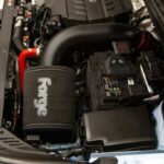 Es leitet die Luft direkter in Ihren Motor und verwendet ein großes CNC-Rohr aus gebogener Legierung mit 102 mm Durchmesser. Diese Nachrüstlösung verbessert auch den Luftstrom durch Hinzufügen eines Luftfilters mit hohem Luftdurchsatz und hohem Wirkungsgrad anstelle des restriktiveren Werksluftfilters. Schließlich ist das Kaltluftansaugsystem so eingerichtet, dass kühlere Luft problemlos in Ihren Motor strömen kann