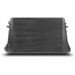Der Competition Ladeluftkühler hat folgende Netzabmaße (610mm x 440mm x 65mm / 17.45L) und bietet damit eine 10% größere Anströmfläche sowie 50% mehr Ladeluftvolumen gegenüber dem originalen Audi S3 Ladeluftkühler. Das neuentwickelte Competition-Hochleistungsnetz gewährt den angrenzenden Bauteilen, wie z.B. dem Wasserkühler, noch genügend Luftstrom und ist zudem noch sehr leicht (S3 OEM 8kg/ WAGNERTUNING 9,2kg) . Im CAD entwickelte Freiform-Endkästen mit eingearbeitetem Luftleitblech aus Aluminiumguss für bestmögliche interne Luftverteilung.