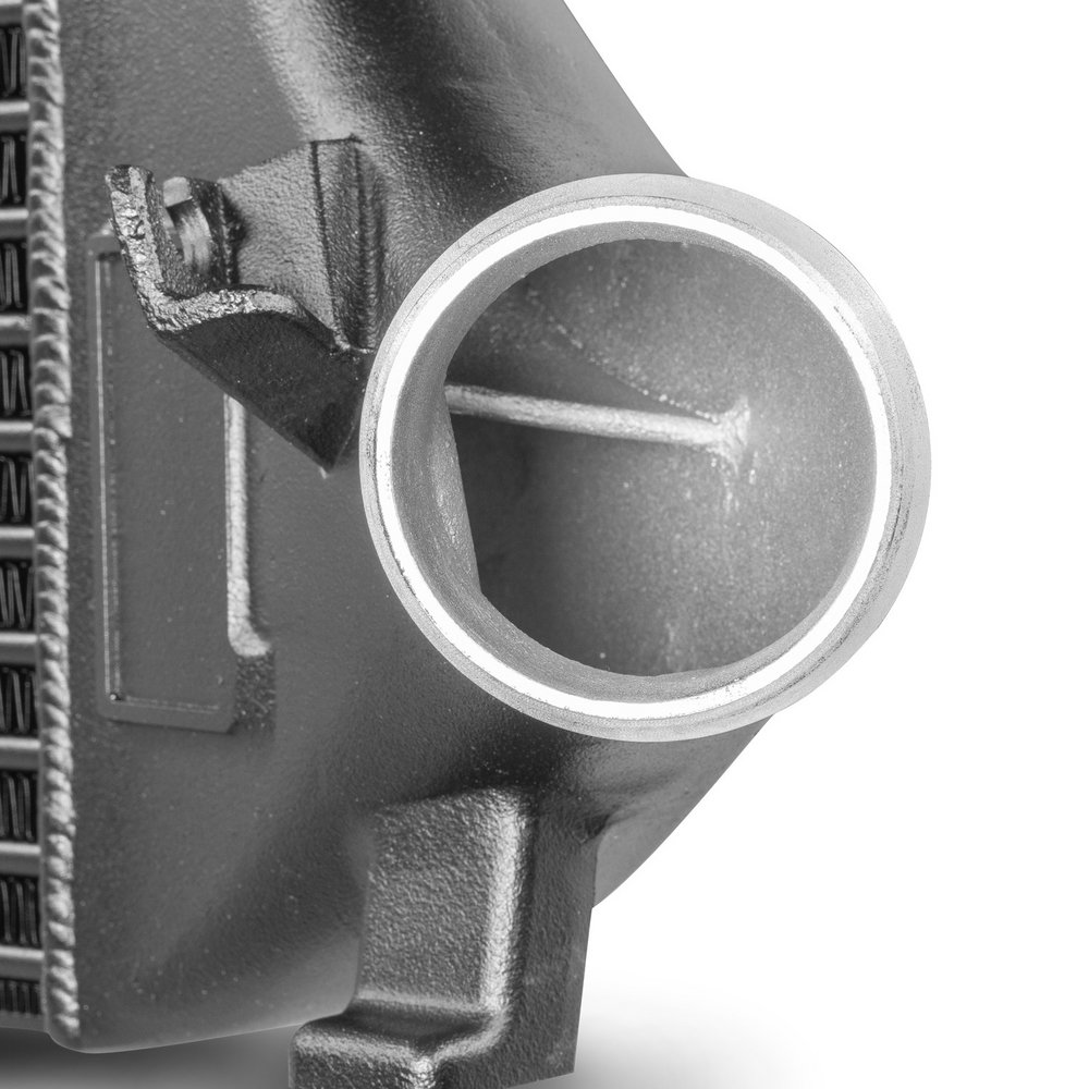 Die Aluminiumguss Endkästen wurden im CAD konstruiert und unter Zuhilfenahme von CFD Simulationen (für einen idealen internen Luftstrom) optimiert. Mit Hilfe einer im Inneren des Kühlereingangs eingearbeiteten Luftführung, wird für eine gleichmäßige Füllung des Ladeluftkühlernetzes gesorgt. Das Resultat sind hervorragende Kühleigenschaften bei geringstem Gegendruck. Zusätzlich gewährt das neuentwickelte Competition-Hochleistungsnetz den angrenzenden Bauteilen, beispielsweise dem Wasserkühler, noch genügend Luftstrom und ist zudem auch sehr leicht. Somit ist dieses Kit genau das Richtige für den Rennsport. Eine optimale Kühlung der aufgeladenen Luft mit deutlichem Leistungsanstieg!