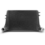 Der Competition Ladeluftkühler hat folgende Netzabmaße (610mm x 440mm x 65mm / 17.45L) und bietet damit eine 10% größere Anströmfläche sowie 50% mehr Ladeluftvolumen gegenüber dem originalen Audi S3 Ladeluftkühler. Das neuentwickelte Competition-Hochleistungsnetz gewährt den angrenzenden Bauteilen, wie z.B. dem Wasserkühler, noch genügend Luftstrom und ist zudem noch sehr leicht (S3 OEM 8kg/ WAGNERTUNING 9,2kg) . Im CAD entwickelte Freiform-Endkästen aus Aluminiumguss für bestmöglichen internen Luftstrom. Der Ein- bzw. Auslass wurden vergrößert (Ø 67mm), daher kommt dieses Kit mit passenden Silkonschläuchen. Insgesamt hat dieser Ladeluftkühler weit aus weniger Gegendruck als der Serienkühler. Zusätzlich haben alle unsere Ladeluftkühler ein Anti-Korrosions-Beschichtung mit Wärmeleiteigenschaften. Dies garantiert eine optimale Kühlung mit deutlichem Leistungsanstieg. Die Montage erfolgt durch Austausch des OEM Ladeluftkühlers und ist einfach durchzuführen. Alle unsere Produkte unterstehen einer stetigen qualitativen Überwachung. Ab jetzt mit TÜV Teilegutachten für viele Fahrzeuge erhältlich.