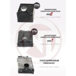 Die EVO 2 Hochleistungsladeluftkühler haben folgende Netzabmaße (2 x [330mm x 222mm x 145mm] = 21.244cm³) und bieten damit 77% mehr Ladeluftvolumen gegenüber den originalen Ladeluftkühler. Das Competition-Hochleistungsnetz bietet sehr gute Kühleigenschaften. Das Gewicht des Ladeluftkühlers beträgt 2x 6,7kg. Dieses einzigartige Ladeluftkühler Kit besteht aus, im CAD entwickelte Freiform-Endkästen aus Aluminiumguss für bestmöglichen internen Luftstrom und einer Druckfestigkeit von bis zu 6 bar (getestet). Einer passenden Carbonluftführung, um eine optimale Anströmung des Ladeluftkühlers zu gewährleisten. Sowie zusätzlichen Silikonschläuchen mit vergrößertem Querschnitt. Des Weiteren haben alle unsere Ladeluftkühler ein Anti-Korrosions-Beschichtung mit Wärmeleiteigenschaften. All dies garantiert eine optimale Kühlung mit deutlichem Leistungsanstieg. Sie erhalten hier ein komplett einbaufertiges Kit, einfach gegen Serien-Ladeluftkühler austauschen – inklusive neue Carbonluftführungen, Silikonschläuche und Aluminiumadapter. Alle unsere Produkte unterstehen einer stetigen qualitativen Überwachung. Für den Rennsport geeignet. 70mm Ein- und Auslass.
