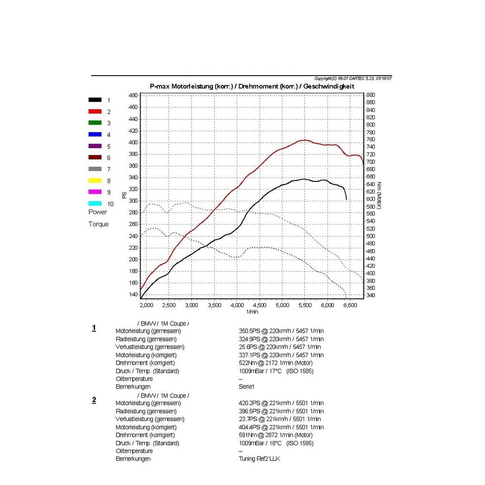 Der Ladeluftkühler EVO 1 hat folgende Netzabmaße (520x210x130/gestuft 11.750cm³) und bietet damit eine 85% größere Anströmfläche, sowie 60% mehr Ladeluftvolumen gegenüber dem originalen Ladeluftkühler. Bei dem Performance-Hochleistungsnetz handelt es sich um ein hochqualitatives Bar and Plate Netz mit sehr guten Kühleigenschaften. Durch den hohen Materialanteil hat die Performance Version ein Gewicht von 9,0kg. Die Endkästen des Ladeluftkühlers sind aus Aluminiumguss und wurden mit Hilfe von Strömungsanalysen im CFD-System optimiert. Das EVO 1 Ladeluftkühler Kit eignet sich für die ersten Leistungsstufen der BMW 35i Motoren. Dieser Ladeluftkühler verursacht weniger Gegendruck als der Serien- Ladeluftkühler. Zusätzlich haben alle unsere Ladeluftkühler eine Anti-Korrosions-Beschichtung mit Wärmeleiteigenschaften. Dies garantiert eine dauerhafte und optimale Kühlung mit deutlichem Leistungsanstieg. Komplett einbaufertiges Kit, einfach gegen Serien-Ladeluftkühler austauschen – plug and play. Die originale Ladeluftschläuche können weiterhin verwendet werden. Bis zu 6 bar getestet und druckstabil. Alle unsere Produkte unterstehen einer stetigen qualitativen Überwachung.